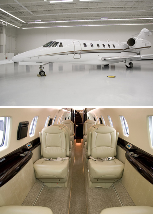 When it comes to speed, nothing beats the Cessna Citation X jet which is perfect for business people who are rushing from one continent to another. It is, by far, the fastest business jet in the fleet and was first introduced in 1996. Citation X is a long range business jet aircraft with the top speed of 607mph and is powered by two efficient Rolls-Royce turbofan engines designed in Kansas by Cessna Aircraft company. Although the design and functionality of the aircraft is roughly based on earlier models, many in the industry considers the Citation X a completely brand new (much improved version). It may look more or less the same as its predecessors, the wing attachment to the fuselage is completely different from the previous models.