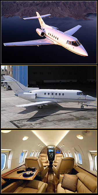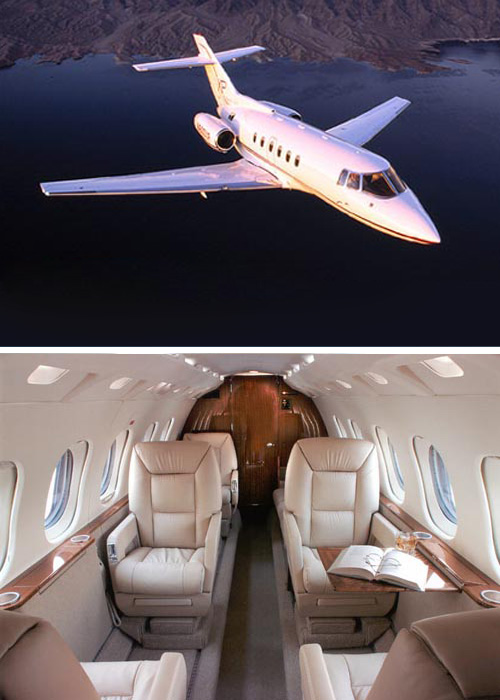 The Hawker 800XP Private jet has spacious seating for seven or eight passengers in its beautiful cabin. Enjoy a TV, air show, VCR, CD stereo, headsets, AC power outlets and Direct dial satellite communications. The Hawker 800XP is equipped for hot meal service and also includes Aft enclosed lavatory and generous baggage space.